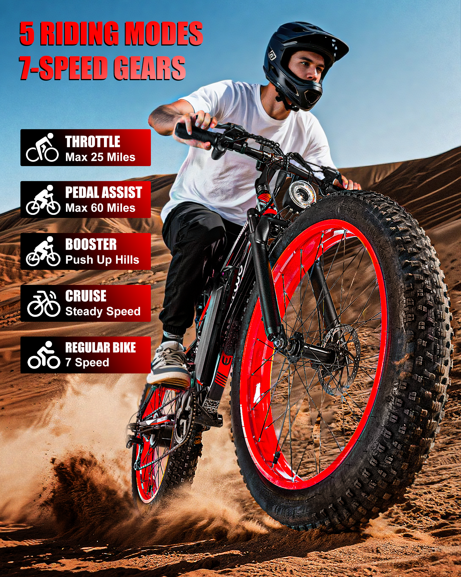 Meet your ultimate adventure companion—the all-terrain electric fat tire bike built for riders who crave speed, power, and freedom. Whether you’re cruising through the city, tackling mountain trails, or exploring sandy beaches and snowy paths, this e-bike delivers the performance you need with the comfort you deserve.